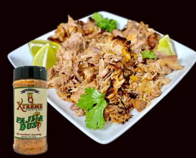 7. Squeeze the juice of half a lime over the pork and season with B Xtreme Fajita Dust to elevate the taste. Finish with a garnish of fresh, chopped cilantro, and you have an irresistible dish ready to serve warm in tacos, burritos, salads, or any way you desire. Enjoy every bite!