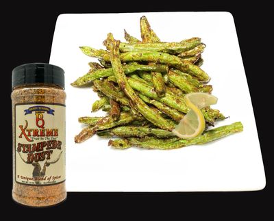 2. Prepare the green beans by trimming the stem ends and placing them in a large bowl. Drizzle them with high-quality olive oil and generously sprinkle with Stampede Dust seasoning. Toss the beans to ensure every piece is perfectly coated.